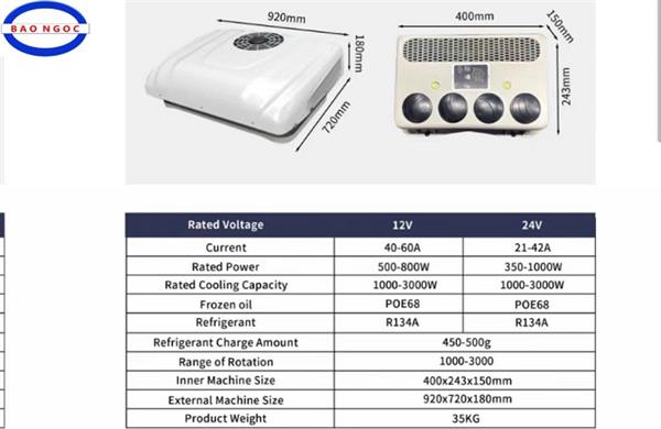 ĐIỀU HÒA MÁY LẠNH ÂM TRẦN XE TẢI - gồm 2 loại điện 12v và 24v, kích thước bên trong 400x243x150mm, kích thước bên ngoài 920x720x180mm, công suất làm mát từ 1000-3000W thường được lắp trên nóc cabin giúp tiết kiệm không gian cho xe và làm mát nhanh, hiệu quả.